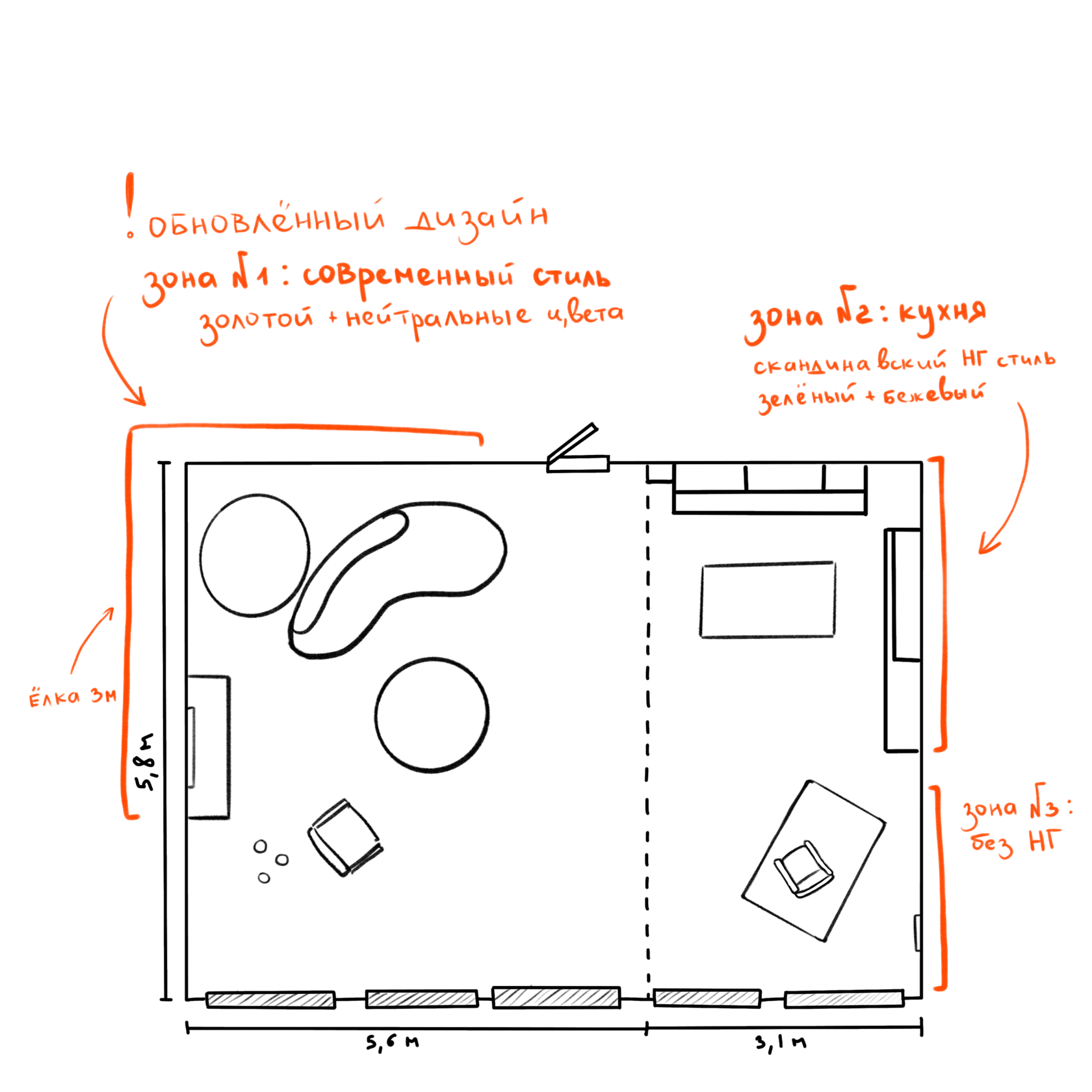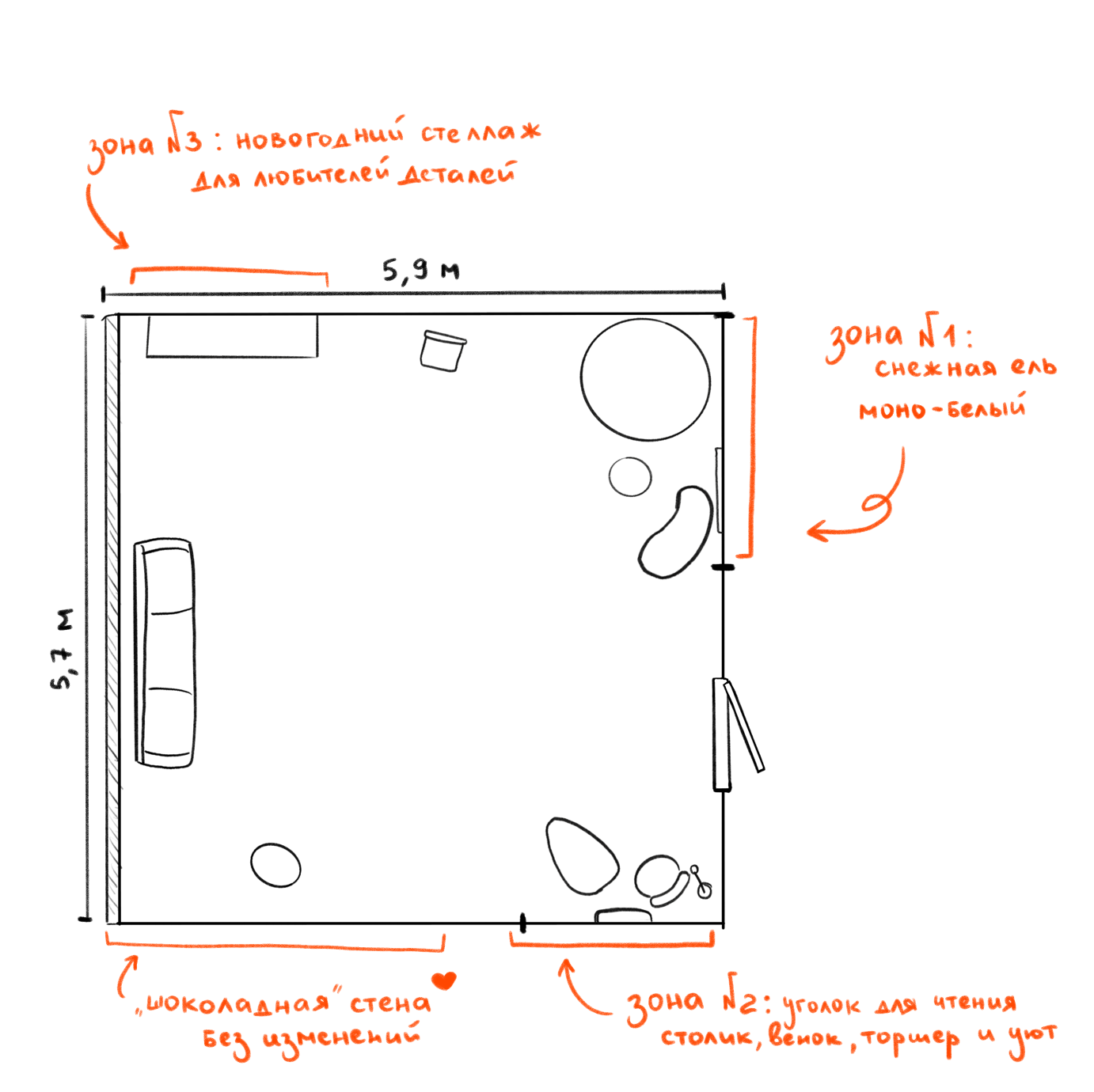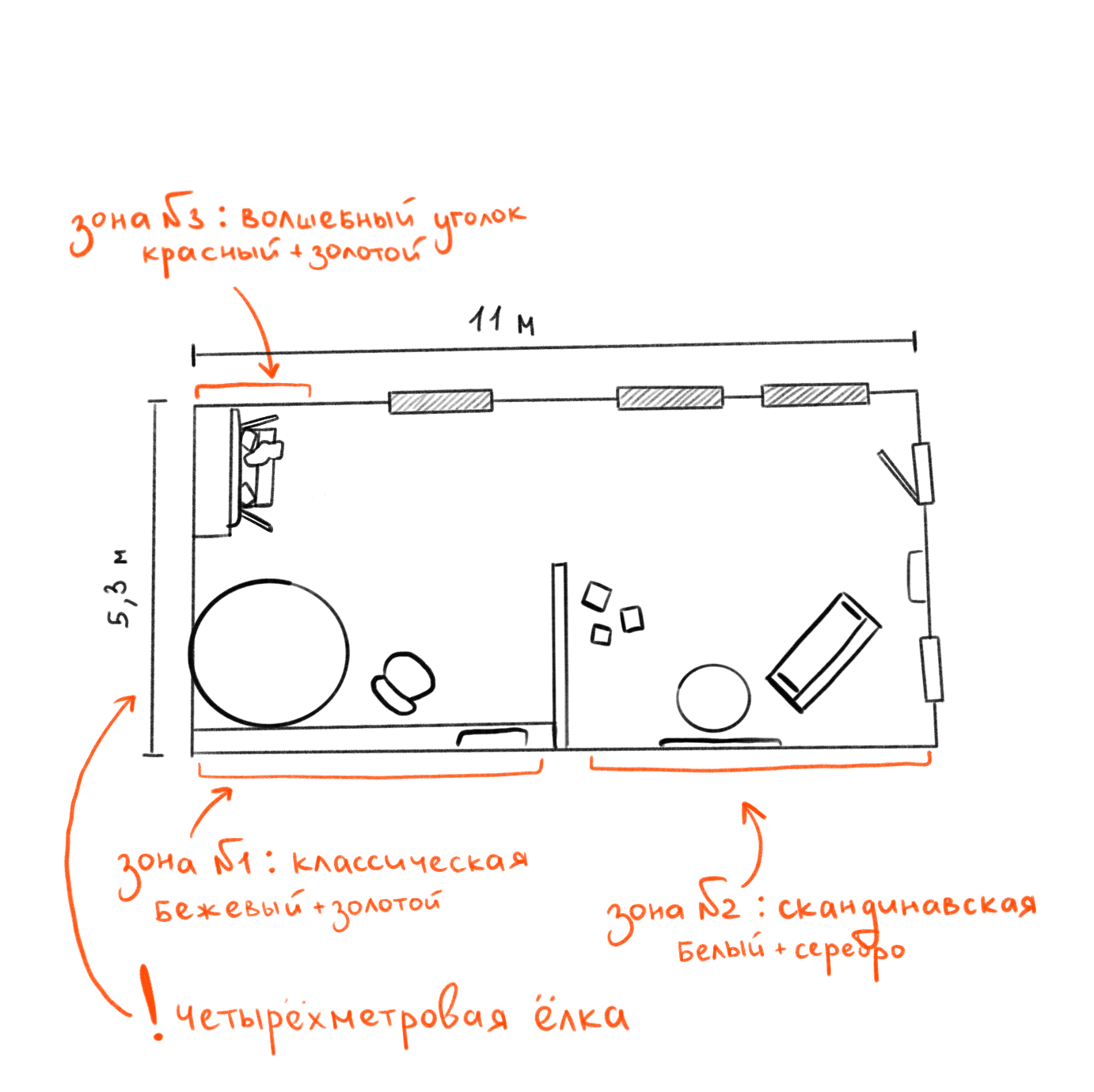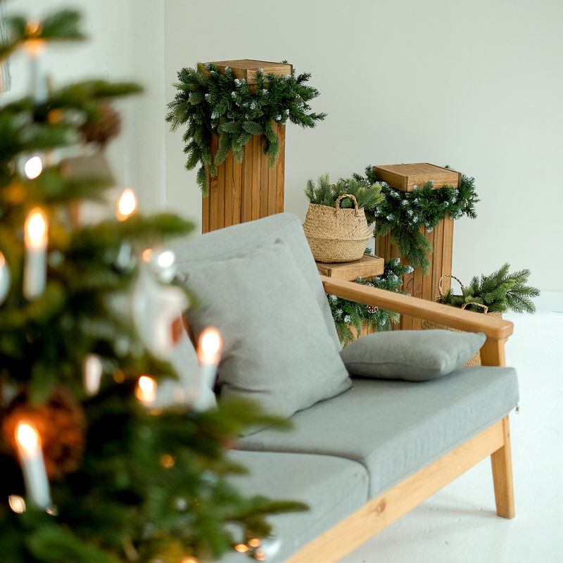 В этом году мы решили сделать зал полностью в светлых тонах. При этом новогодние зоны будут отличаться за счет разной стилистики. Будет зона в скандинавском стиле, которая идеально подойдет для уютных семейных фотографий в свитерах.